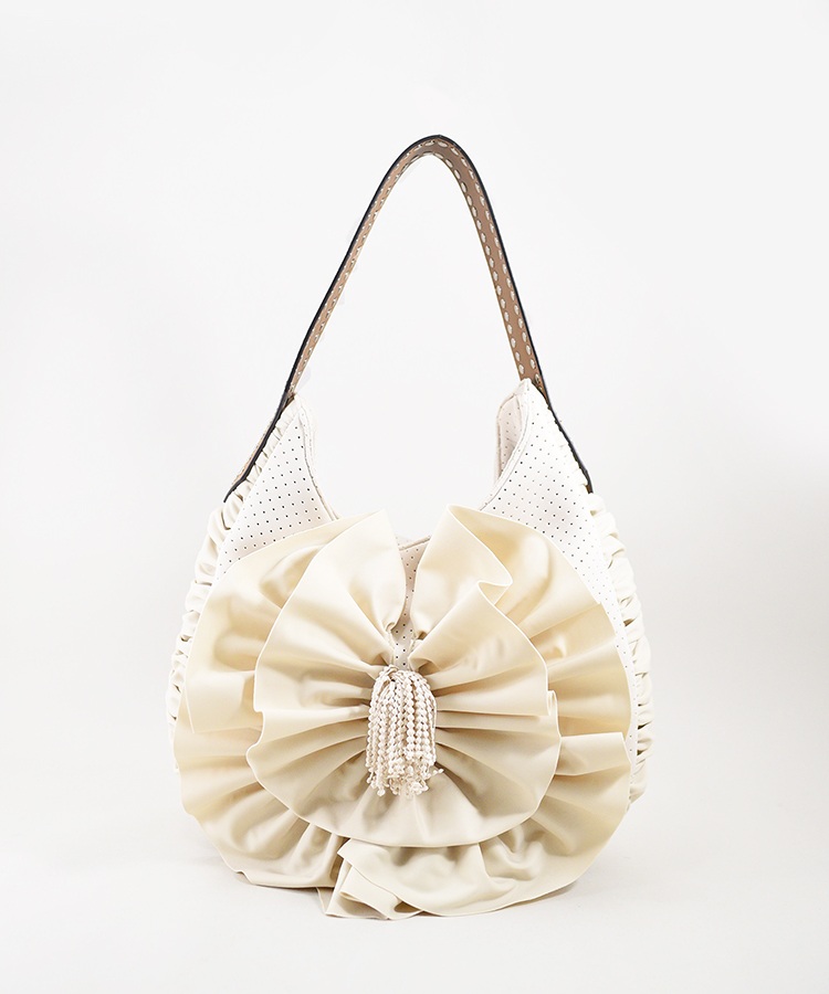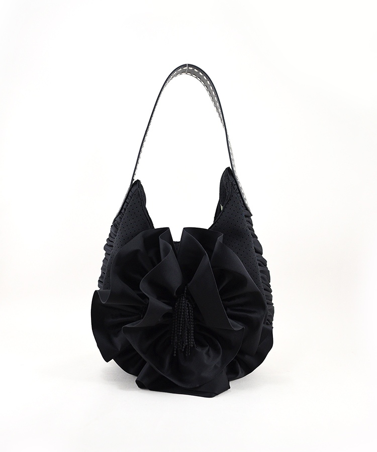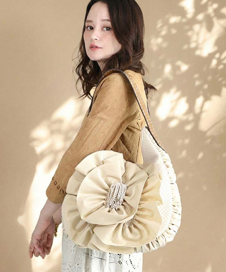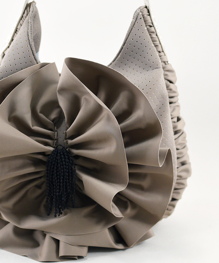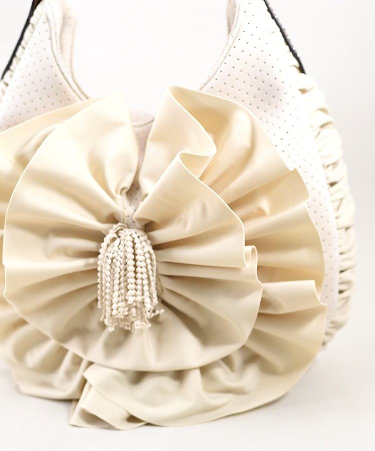 前面に咲く大ぶりのお花のディテールは、女性らしい華やかさと存在感を演出。