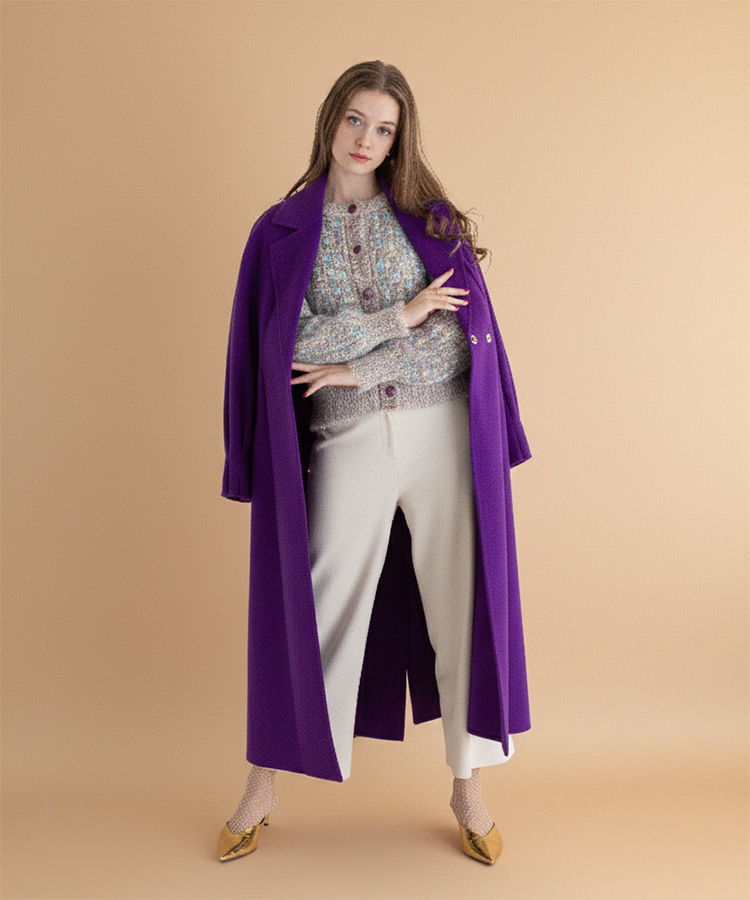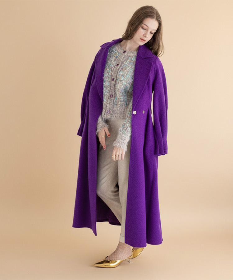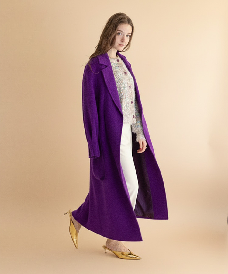深く、美しいパープルが印象的なラグジュアリーウールコート。