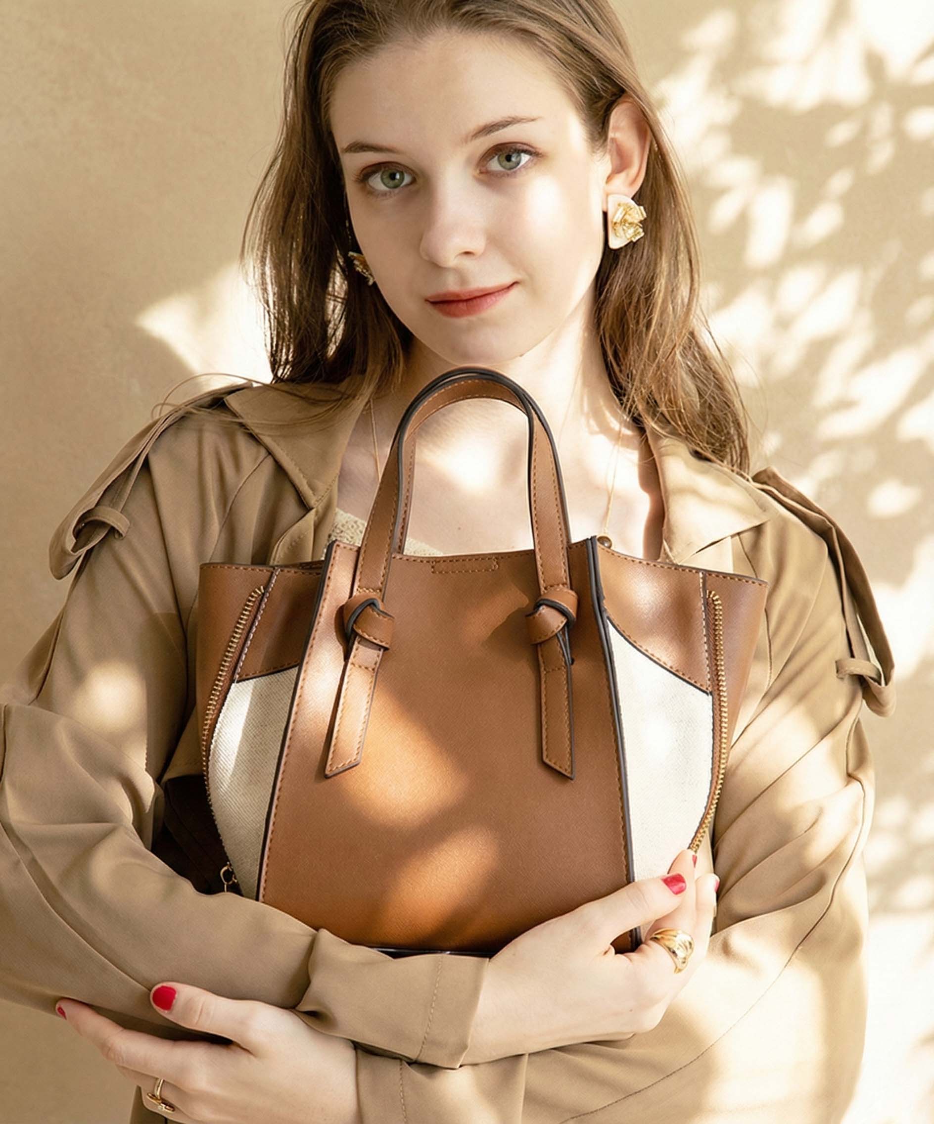 サイドがジッパー(ファスナー)式の変形自在なトートバッグで、開け閉めで好みのサイズや形状に変えられ何通りものコーデを楽しめるのが嬉しいポイントです♪