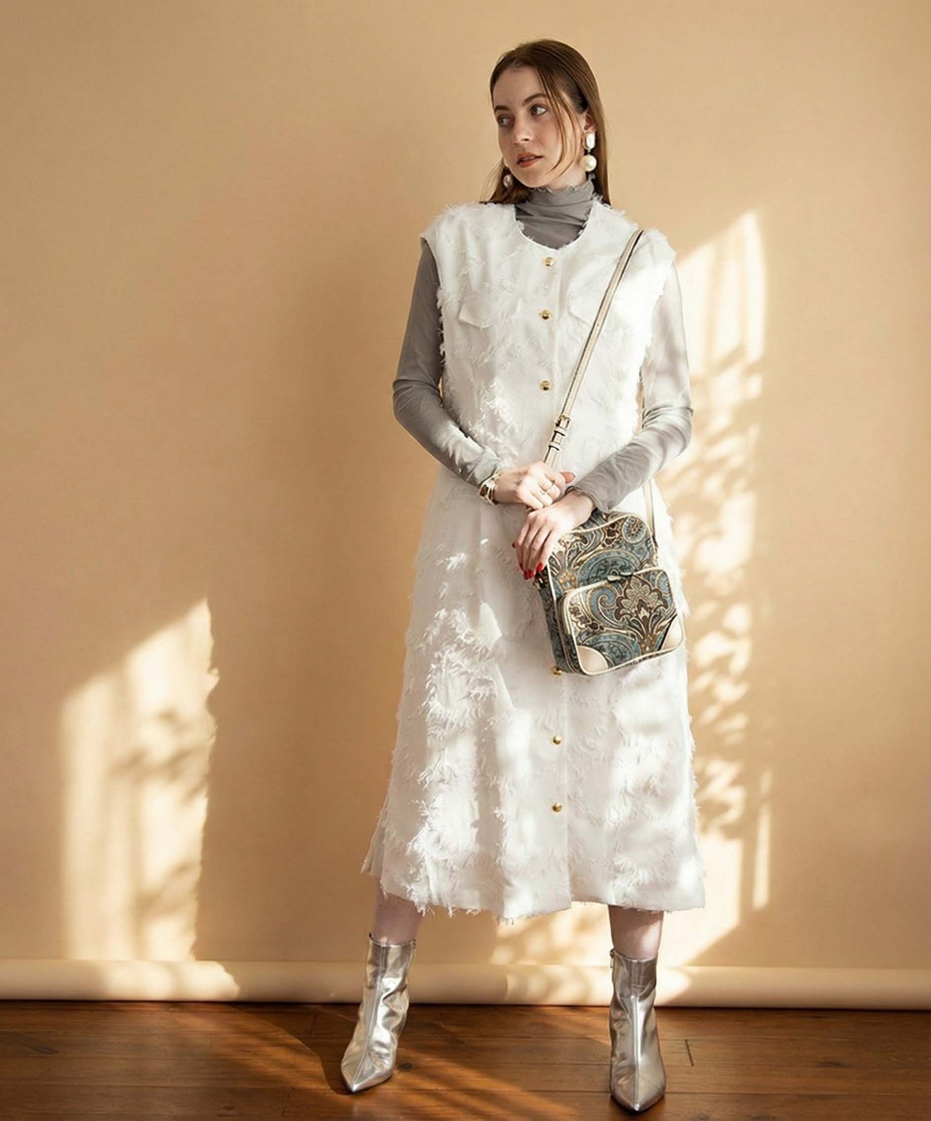 冬コートの上からも、デザイン性の高いバッグを取り入れればグッとオシャレな雰囲気に。